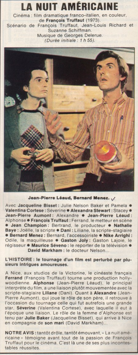 "Rarement un film n'aura aussi bien montré les coulisses d'un tournage... tout en transpirant l'amour du cinéma. François Truffait écrit ici une lettre passionnée au 7ème Art."